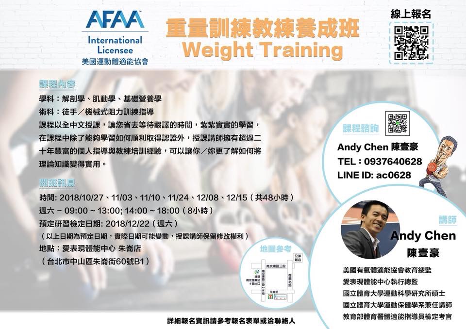 🎉為慶祝體適能博覽會圓滿成功!我們提供最強陣容、最便利的報名方式,千萬別錯過2018最後一期重量訓練教練養成暨檢定班!