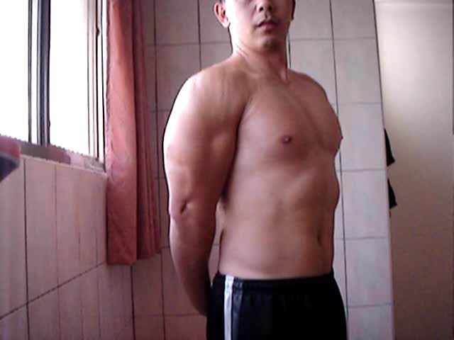 大隻佬耶,雖然体脂較高,可是腹肌的形狀有出來.