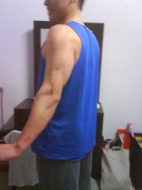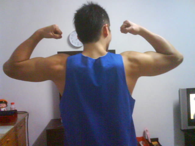 我本身比例是大頭骨架也不大,所以比較注重練肩,在泳隊時也是專攻蝶式,現在體重增重後看起來較寬...,是有一些成果,但是同14樓大大所說的,體質並沒有控制好(偏高@@:)。