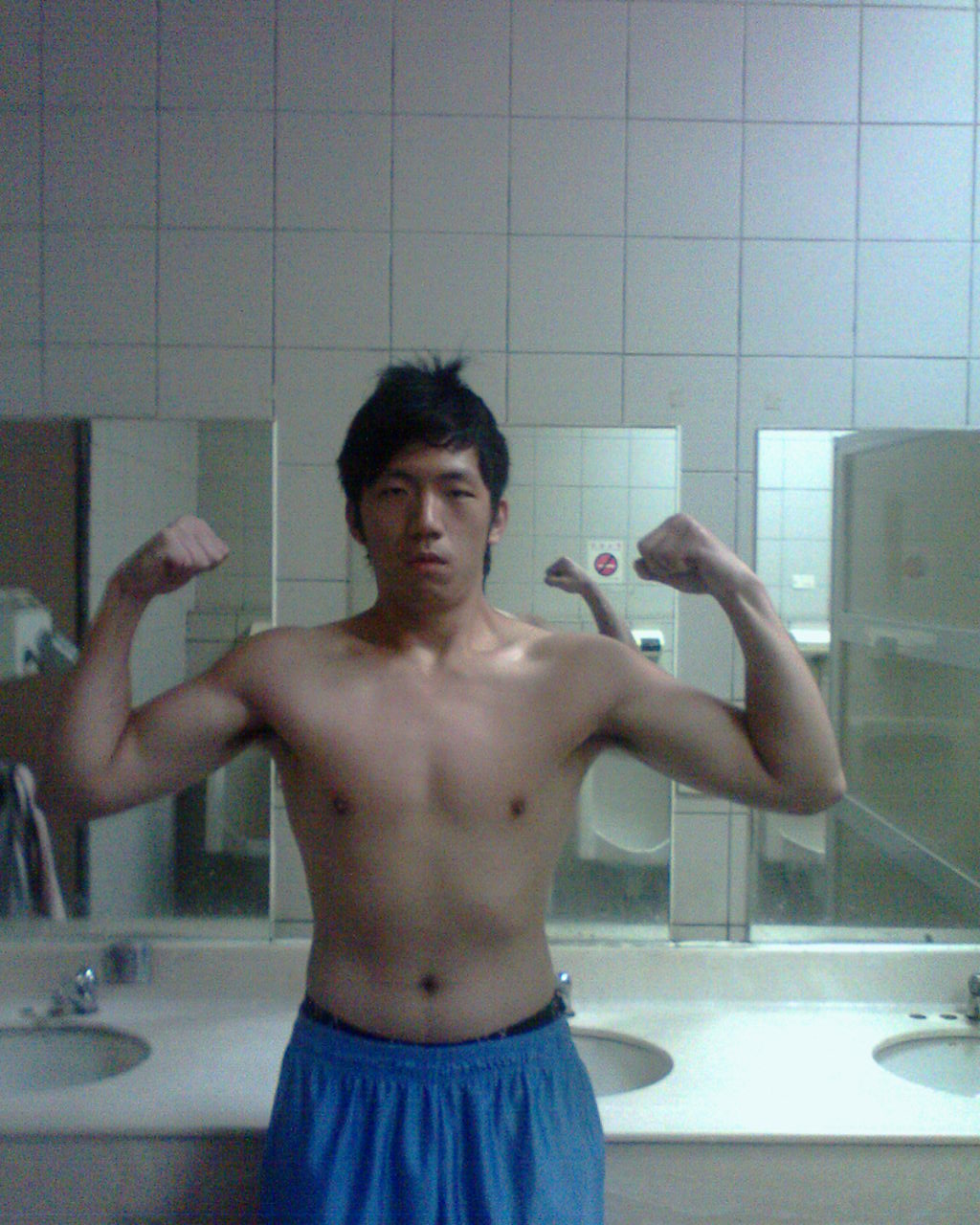 第一次~~~胸大肌+擴被下拉+上胸+划船+二頭+三頭 各3~4組