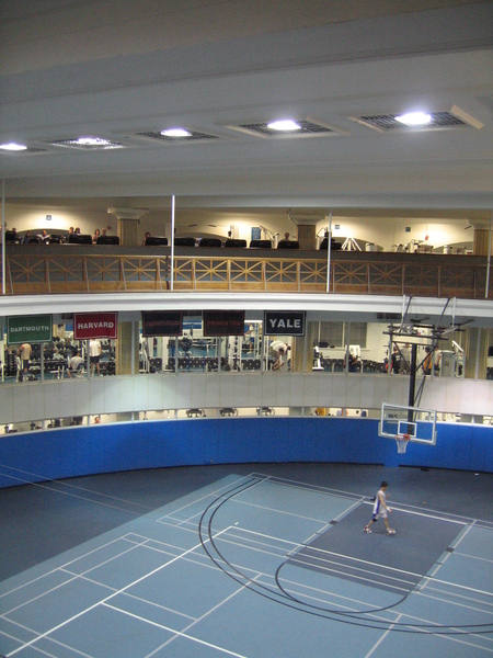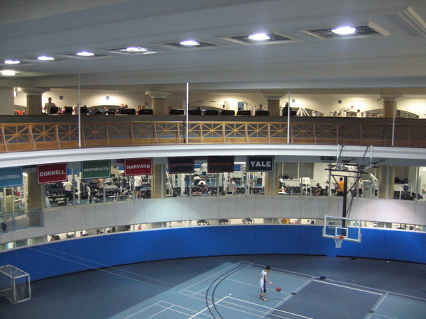 我覺得哥倫比亞大學的健身房分散在體育館籃球場的旁邊走道上..感覺有點狹窄