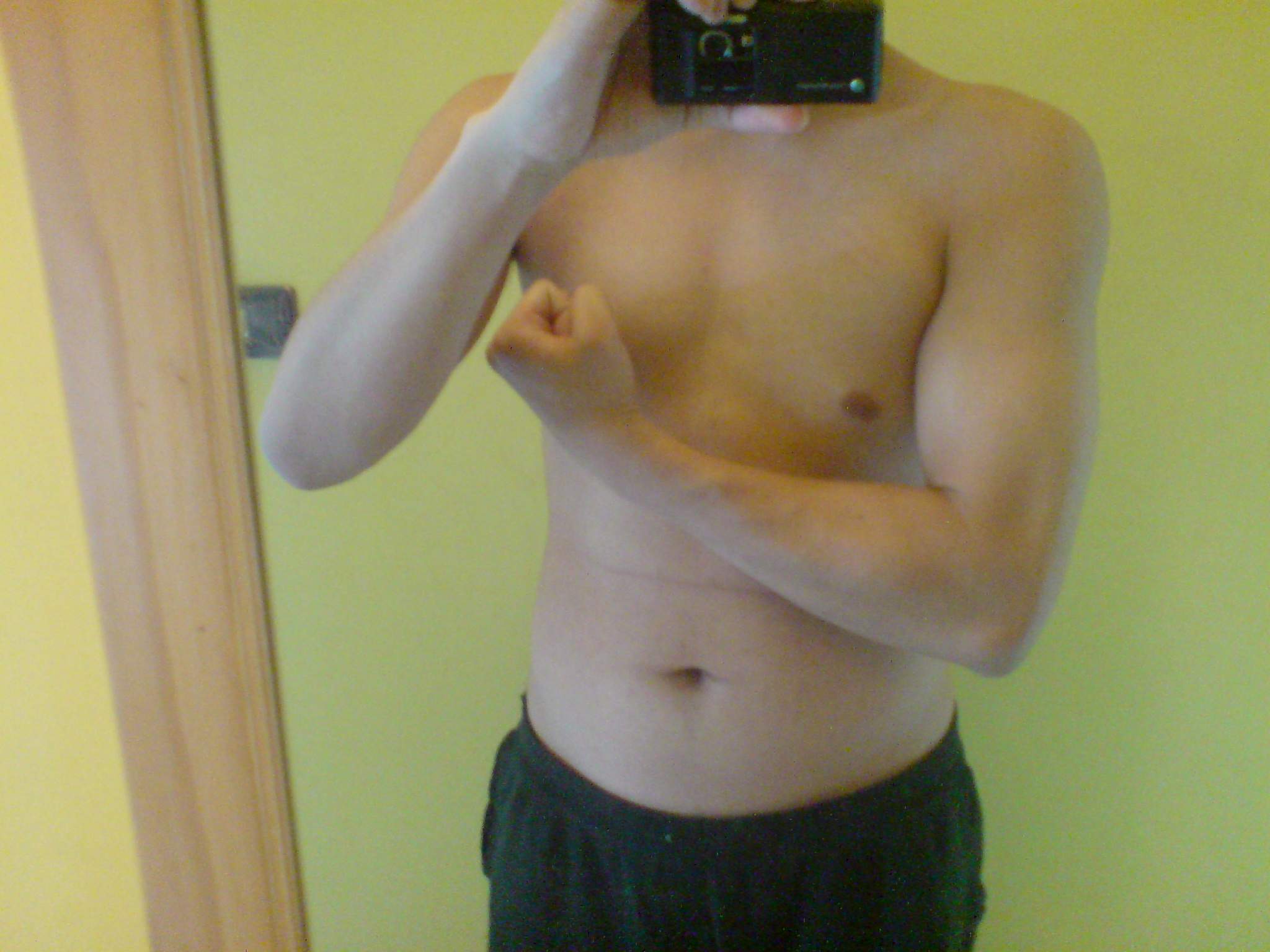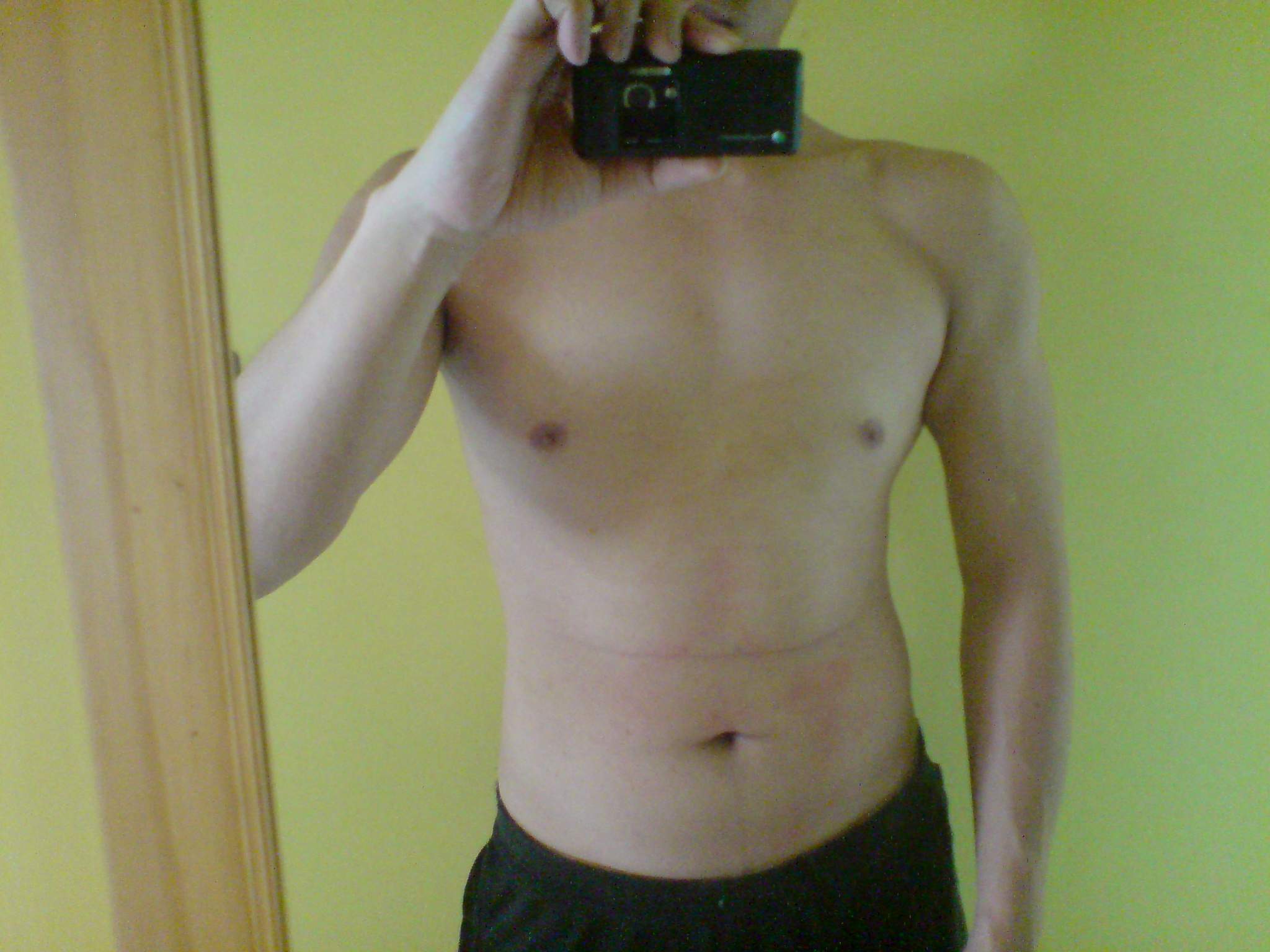 凭照片的肉来看要做20---30个一组连做5组,还需要努力半年左右,到时胸肌就成形了罢