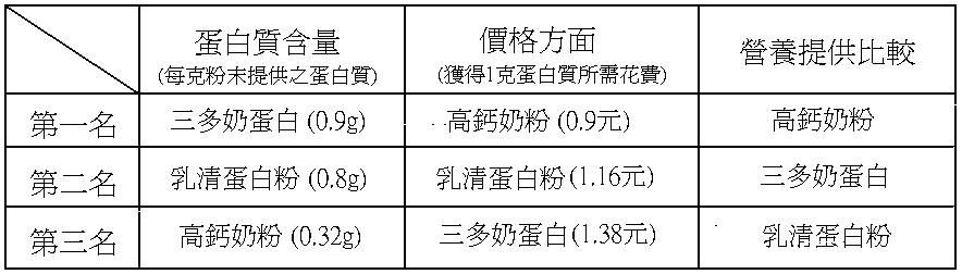 (8g蛋白質=9g三多奶蛋白=10g乳清蛋白粉=25g奶粉=240cc鮮乳)