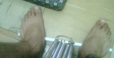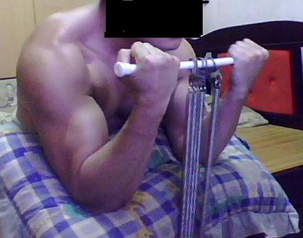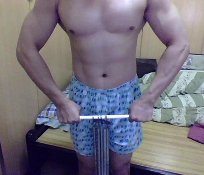 原本只能用單手拉 嫌他不能兩手一起 剛好有很堅硬的鐵管 插進後 試著試感覺蠻不錯練的