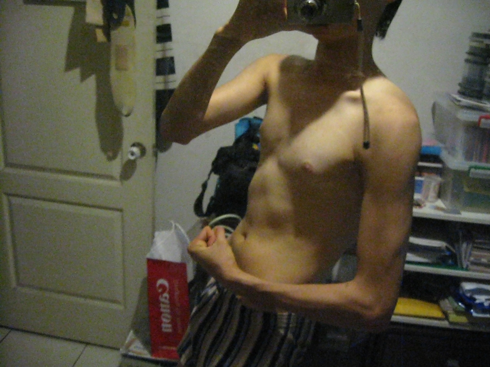 你這跟我沒練差不多阿,不是我要打擊你,脫掉我也感覺不到肌肉,體旨那麼低也看不到腹肌,繼續加油八.有空可以請教健身房的前輩,不要自己盲目的亂練,營養,休息,都要夠,我也是快練3個月,不過我沒你有勇氣po圖,自認還不合格