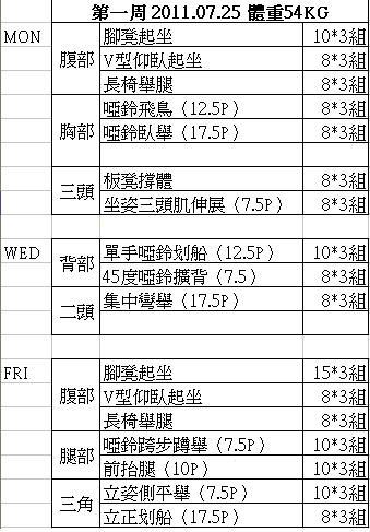 如前三角,三頭等,有幾天最後還會穿插腿或腹的練習...