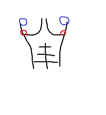 問題2:我做完發現我的胸部靠近腋下那邊(下圖藍色圈圈部分)會很痠,這樣正常嗎?